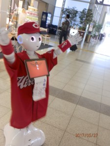 広島空港に行って来ました♬ 5月の最後の土曜日に、天気にも恵まれドライブ日和となり 少し遠出をしてきました。 空港に着くと出迎えてくれたのはペッパーくんでした。(*^^*) みんなペッパーくんに夢中!! そして離着陸の時間を確認して デッキに上がり、どの飛行機が飛ぶのかなと みんなでワイワイおしゃべりしながら 待っていると、 一機の飛行機が動き出し 飛び立ちました。 『わぁー』という歓声 色々な飛行機が見れて、子供たちは喜んでいました。 お腹がペコペコになったので、近くの公園に行ってお弁当を食べました。 帰りの車では、疲れて眠るかなと思いきや みんな元気で大はしゃぎでした。 とても楽しい小旅行でした(#^^#)